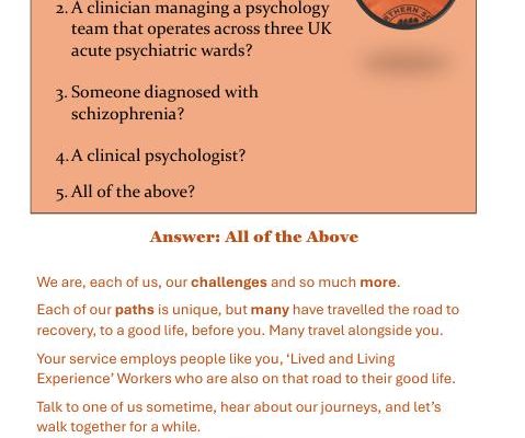 If what we are experiencing isn’t an ‘Illness’ then what is it? Consumer developed or adopted approaches and how they fit together“ Note, this is not a suggestion that a LLEW must adopt the approaches below, just a note that alternatives exist and are accepted widely in parts of our…